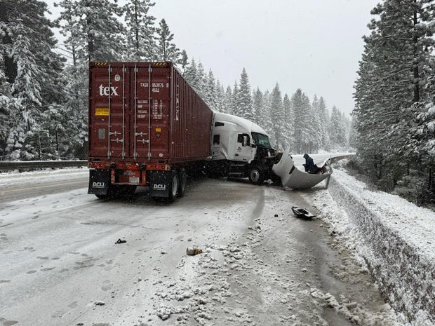 Scene of the big rig crash near Blue Canyon. California Highway Patrol/CBS Bay Area