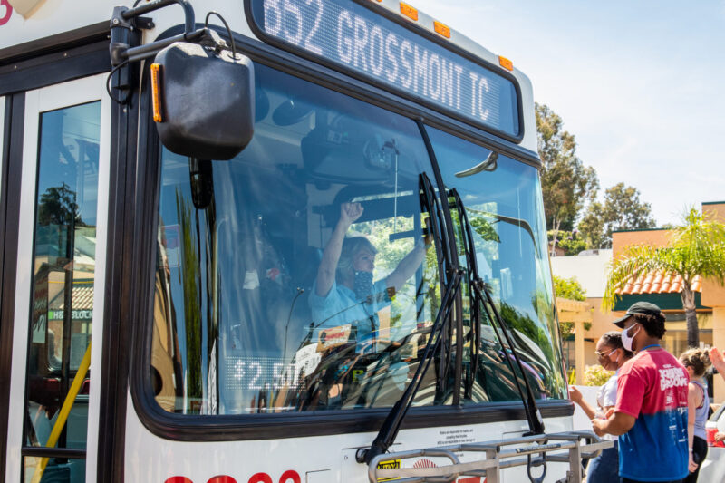As protesters made their way down University Avenue in La Mesa, an MTS bus driver held up her hands in solidarity.