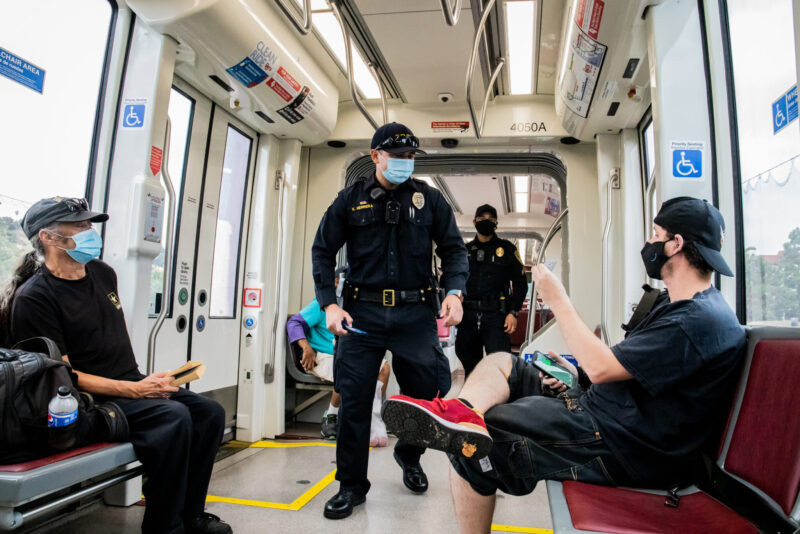 Within the past year, VOSD’s Lisa Halverstadt has explored how Metropolitan Transit System’s enforcement can upend the lives of residents who depend on public transit. That includes ticketing Black riders at a higher rate, overruling doctors’ orders on reducing fares for the disabled and more. Halverstadt and I joined MTS code compliance officers one morning in July to better understand how they interact with riders.