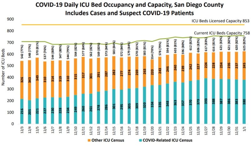 As recently as Dec. 29, Scripps only had 12 available ICU beds, Carpowich said. He also noted the Scripps network is already operating in “surge” mode, meaning doctors have converted non-ICU beds to provide ICU-level care.