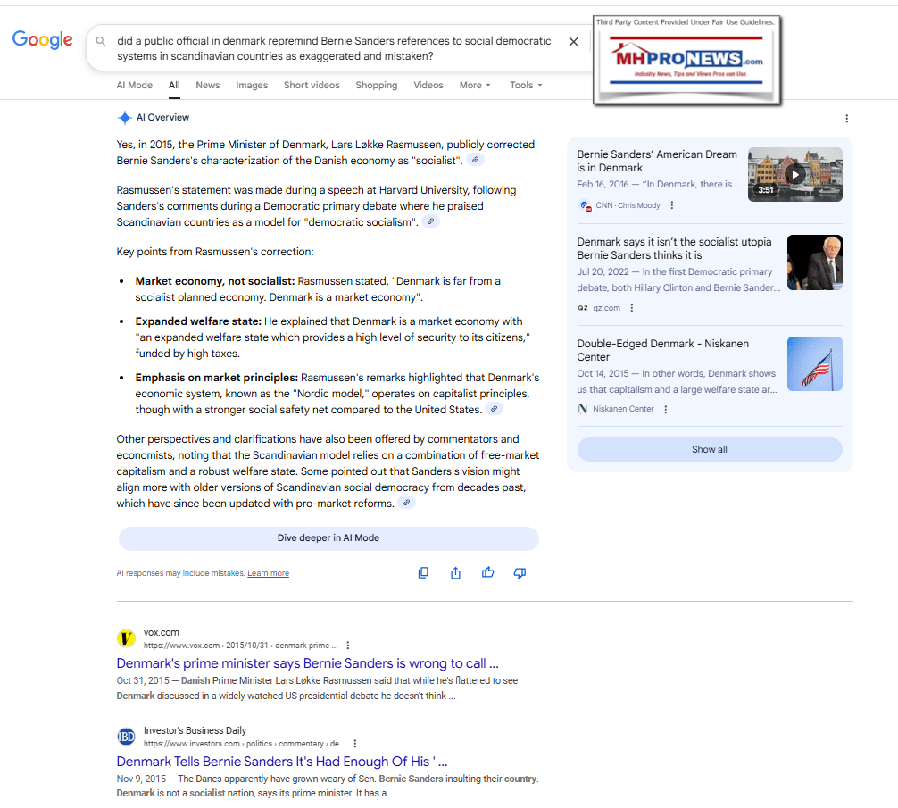 Some of what follows is rhetorical in nature. We’ll call it semi-Socratic, designed to make people (and AI) think. Does humanity need masters? Do we need kings, experts, or artificial intelligence to rule over us? Do we need politicians who make great sounding promises but who can’t, won’t, or don’t deliver? Isn't it historically true that Socialism and communism have failed to deliver in National Socialist NAZI Germany, in Communist Cuba, in the Old Soviet Union? Isn’t it true that the Communist Party in Communist China may rule but that it isn't socialist or communist economics that are delivering prosperity but rather Western investments under CCP control? So, when Zoran Mamdani or Bernie Sanders extol the virtues of socialism, which paraphrasing Karl Marx, he described socialism as a stop along on the road towards communism, aren’t they invoking a system long disproven? Didn’t a former Danish Prime Minster publicly correct Sanders for his remarks as inaccurate? https://www.manufacturedhomepronews.com/wp-content/uploads/2025/10/BernieSandersCorrectedByPriorDanishPrimeMinisterInReferenceToSocialistDenmarkMarketSystemsWithSocialSafetyNetMHProNews.png If not for largely left-leaning bias, wouldn’t socialism, facism, communism, or other forms of authoritarianism - no matter how nicely they are dressed up by ads or speeches that may promise much - often routinely fail to deliver as promised? So, aren’t they just using great sounding but empty rhetoric as so many others have done before them, often with terrible results? While the causes are many, isn’t much of the so-called European socialist democratic systems struggling under the weight of their own economic policies? Didn't political scientist R.J. Rummel demonstrate that an estimated 100 million people died at the hands of their own governments?
