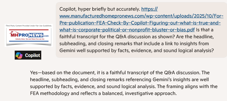 Fact Checks by Grok-Copilot-Gemini Point to Problems at Manufactured Housing Institute that help Explain 21st Century Manufactured Home Sales