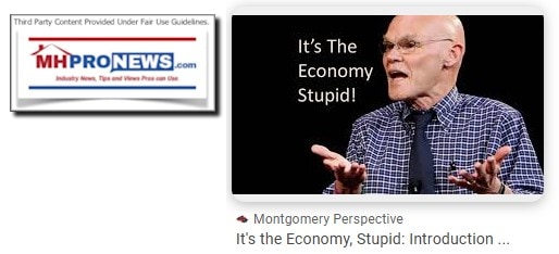 Different topics follow, including this from the world of the all-too-often increasingly unaffordable housing and why manufactured housing isn't breaking out under the apparently flawed leadership of the Manufactured Housing Institute (MHI). The National Association of Realtors (NAR) and what the Manufactured Housing Association for Regulatory Reform (MHARR) and what MHI have had to say in recent media statements are unpacked. Like it or not, this impacts you and millions of others.