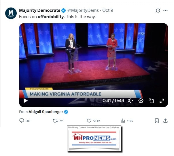 Let's look at Governor-elect Abigail Spanberger (D). Per her X.com feed: "As Governor, make no mistake — I will make lowering everyday costs across Virginia my top priority."