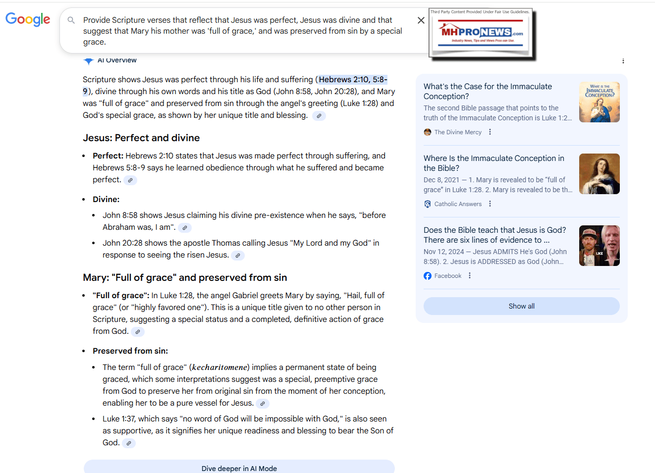 But this principle isn't just about politics. It is about matters of faith too. Let's pivot back to Google's AI. Here is what I tested Google with earlier on this date (10.27.2025).