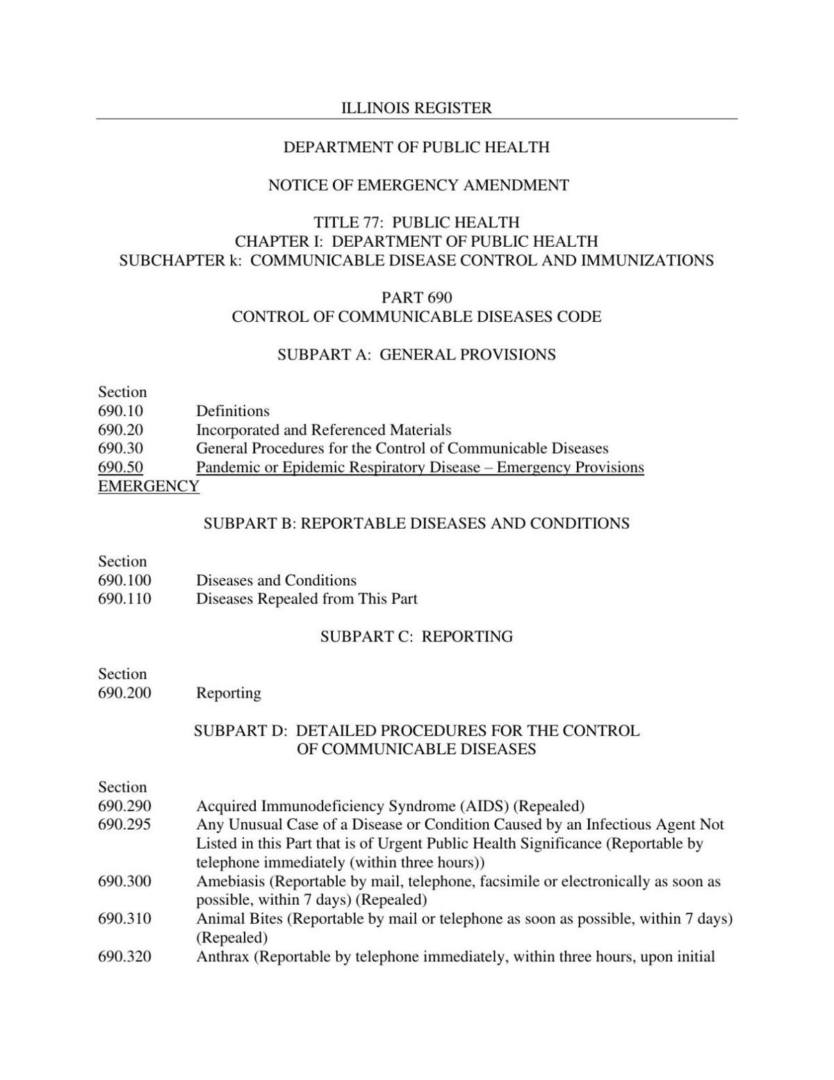 The Illinois Department of Public Health on Tuesday said a similar emergency rule was filed Monday.