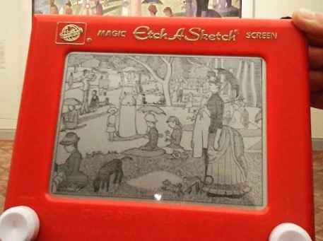 Jane Labowitch needed 8 hours in 4 sittings to complete her Etch-A-Sketch version of the famous Georges Seurat painting A Sunday Afternoon on the Island of La Grande Jatte—1884 hanging in the Chicago Art Institute.
