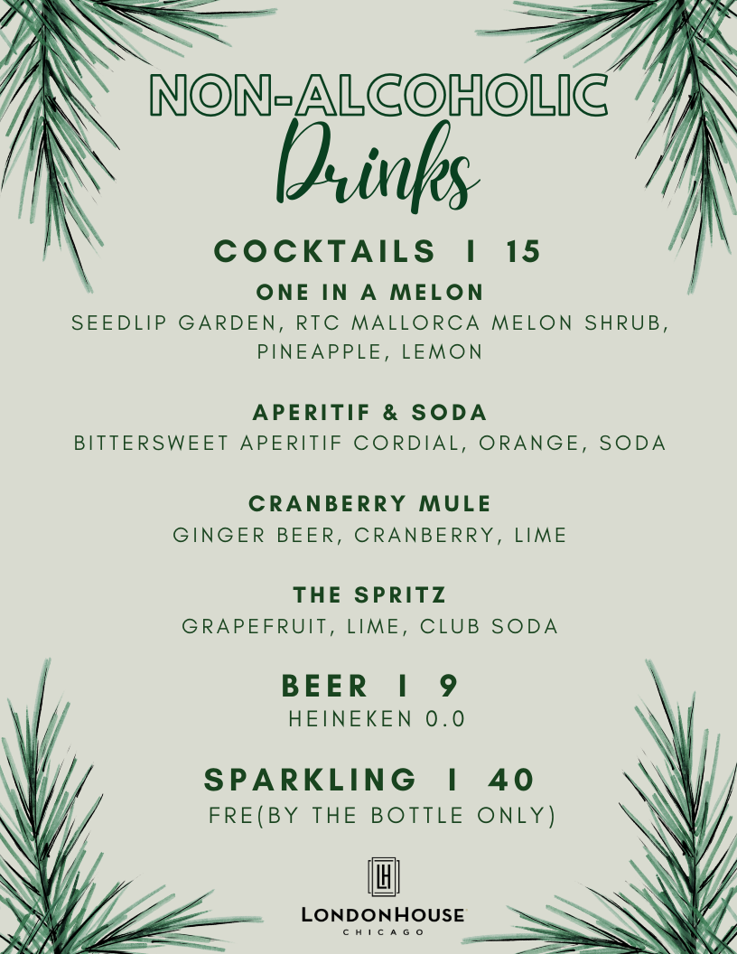 LondonHouse Chicago offers the ideal setting to ease into the month. LH on 21 is a warm, welcoming atmosphere with a non-alcoholic drink menu designed with the same care as our cocktails. Because Dry January should still feel like a treat.