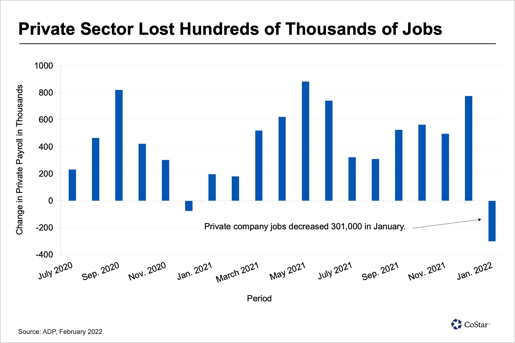 βThe labor market recovery took a step back at the start of 2022 due to the effect of the omicron variant and its significant, though likely temporary, impact to job growth,β said Nela Richardson, ADPβs chief economist, in a statement.