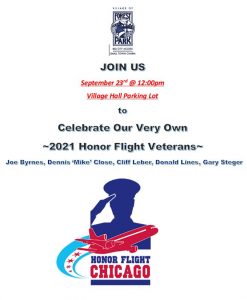 Village Of Forest Park: Tomorrow, 9/23 @ 12:00pm ~Join Mayor Hoskins To Celebrate The Forest Park 2021 Honor Flight Veterans~