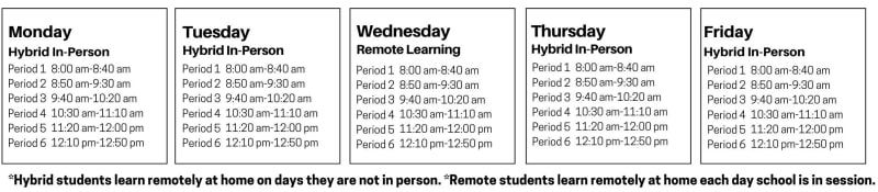 Next year’s calendar does not include a schedule of in-person or remote days because ISBE and CDC guidance can change along with positivity rates. We continue to monitor the COVID metrics for our zip codes and we are following all guidance. When we have the school day structure for next year, we will communicate this to our students and families. Thank you for your patience and understanding.