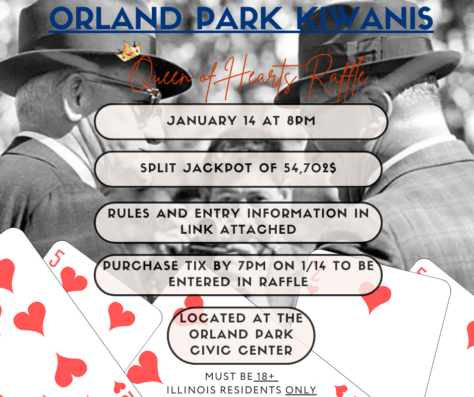 After the Midwest Wild Card Matchup, make sure to join us in-person or via Facebook Live this Wednesday, January 14 at 8pm for the Queen of Hearts Raffle at Orland Park Civic Center! If your ticket is drawn and you find the Queen of Hearts, you will split the jackpot of $54,702 - turn over any other card and you win $500. Purchase your tickets online. Winner need not be present.