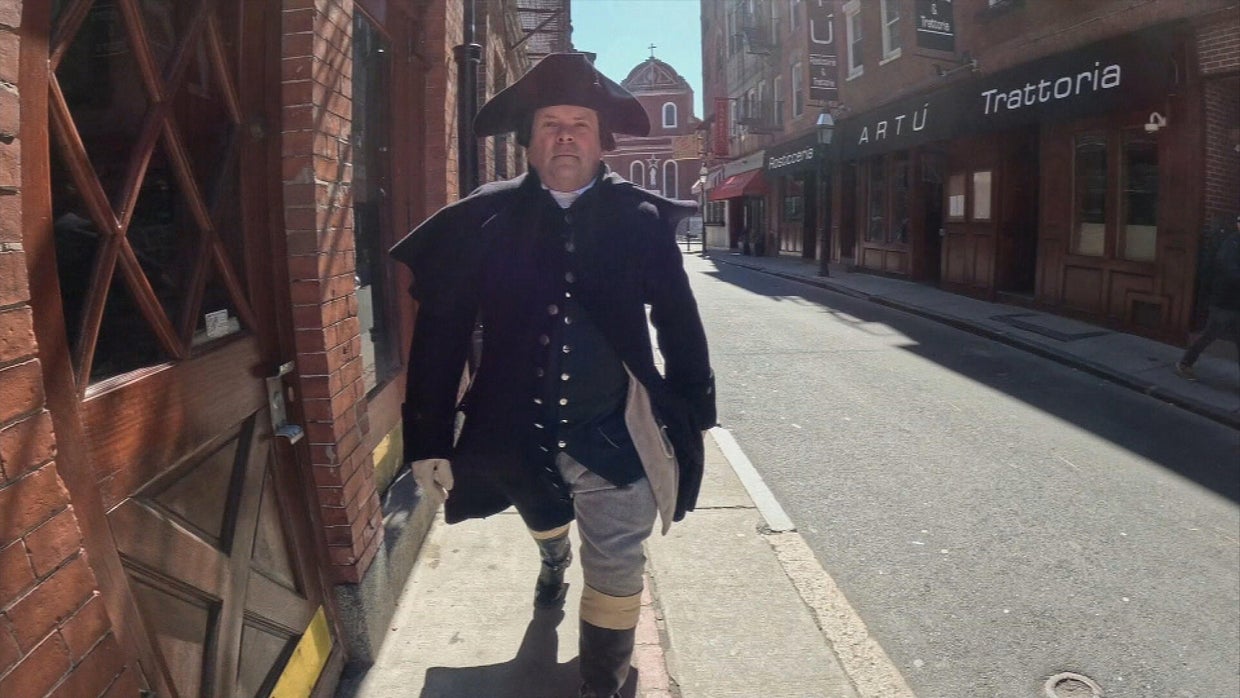 Michael Lepage, portraying Paul Revere, walks to Old North Church/CBS Boston
