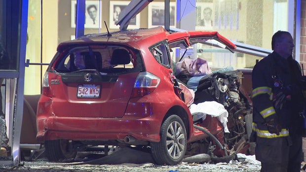 A car crashed into the entrance of an office building in Marlboro/CBS Boston