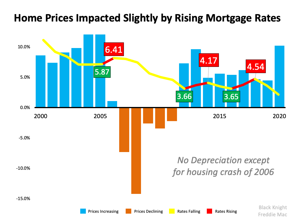 “The tsunami of foreclosures many feared in the early days of the pandemic has not materialized thanks in large part to the swift and decisive foreclosure protections put in place by government policymakers and the mortgage servicing industry.” ###/blockquoteConsumer Financial Protection Bureau (CFPB), issued this ###a href="https://themreport.com/daily-dose/11-10-2021/stepping-up-efforts-to-avoid-a-wave-of-foreclosure" target="_blank">statement just last week:“Failures by mortgage servicers and regulators worsened the impact of the economic crisis a decade ago. Regulators have learned their lesson, and we will be scrutinizing servicers to ensure they are doing all they can to help homeowners and follow the law.”2. Rising Mortgage Rates Will Slow the Housing Market Another topic that’s generating frequent headlines is the rise in mortgage rates. Some people are expressing concern that rising rates will negatively impact the housing market by causing home sales to dramatically decline. The resulting headlines are raising unneeded alarm bells. To counteract those headlines, we need to take a look at what history tells us. Looking at data over the last 20 years, there’s no evidence that an increase in rates dramatically forces sales to come to a halt. Nor does home price appreciation come to a screeching stop. Let’s look at home sales first: