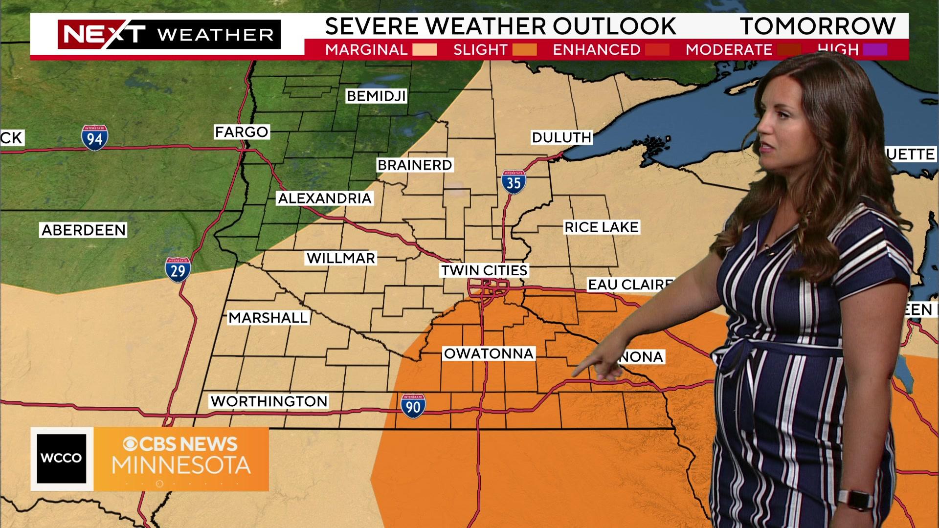 And we may not be finished with the severe storms just yet. WCCO meteorologist Katie Steiner says that there's another chance for storms today, and Monday brings with it a marginal to slight risk of severe weather.
