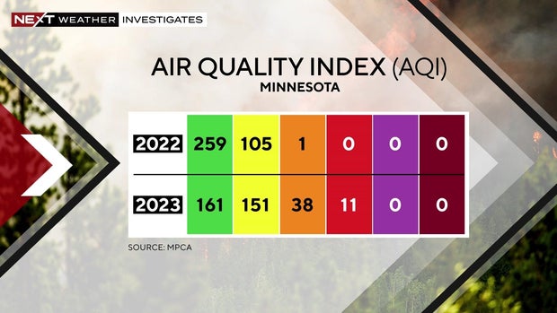 Minnesota's Air Quality Index (AQI) in 2022 vs. 2023/WCCO