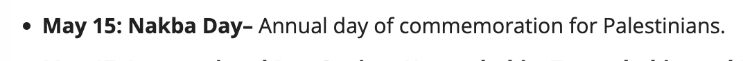However, soon after NHJournal contacted city officials, the city posted its 2025 “Diversity & Inclusion” calendar, and the description of Nakba Day is very different: