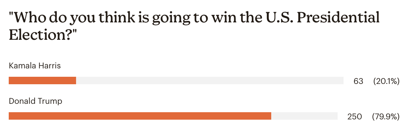 Asked who is going to be elected president, 80 percent predicted Trump, 20 percent predicted Vice President Kamala Harris.