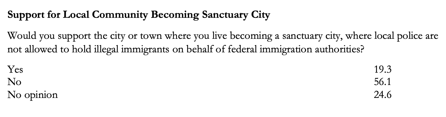 Democrats have also unanimously opposed a ban on sanctuary cities in New Hampshire, despite 56 percent of Granite Staters opposed to their city or town becoming a sanctuary city. Just 19 percent support it. A bill banning sanctuary cities passed the Senate in a party-line vote, but Democrats killed it in the House.