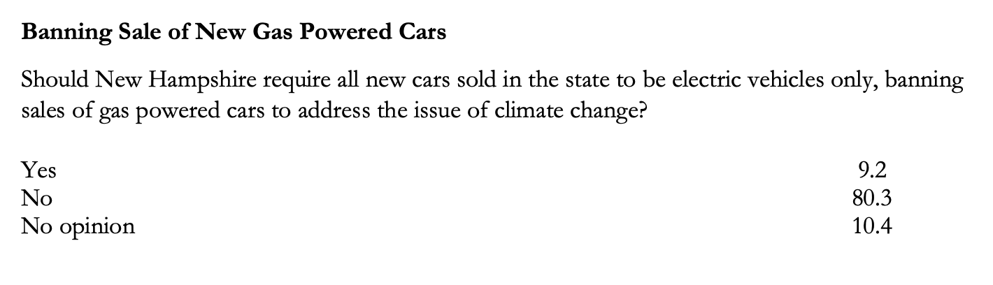 And if Executive Councilor Cinde Warmington is counting on her CLEAN energy economy plan picking up votes, she may need to recalculate. Her plan calls for a zero-carbon New Hampshire by 2040, which would mean following California’s example and banning the sale of gas-powered cars.