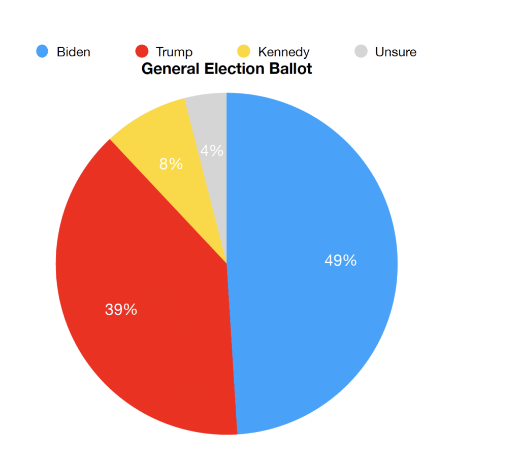 Despite Biden’s apparent weakness, however, he held a 10-point lead over Trump in a head-to-head New Hampshire matchup. Biden was at 49 percent, Trump at 39 percent, and environmental activist Robert F. Kennedy Jr., running as an independent, was at eight percent.