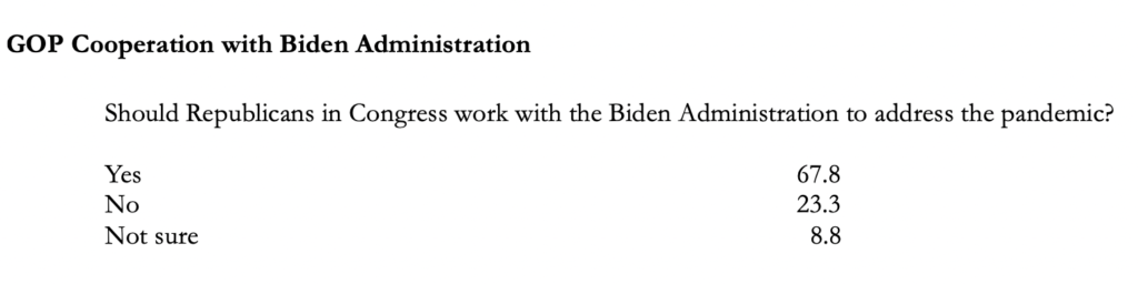 “We found 70 percent of Republicans believe the election was illegitimate, and a similar number still want Republicans to work with Biden to confront COVID,” said pollster Jonathan Klingler, who conducted the poll for NHJournal. “That includes 56 percent of those who believe the election was illegitimate.”
