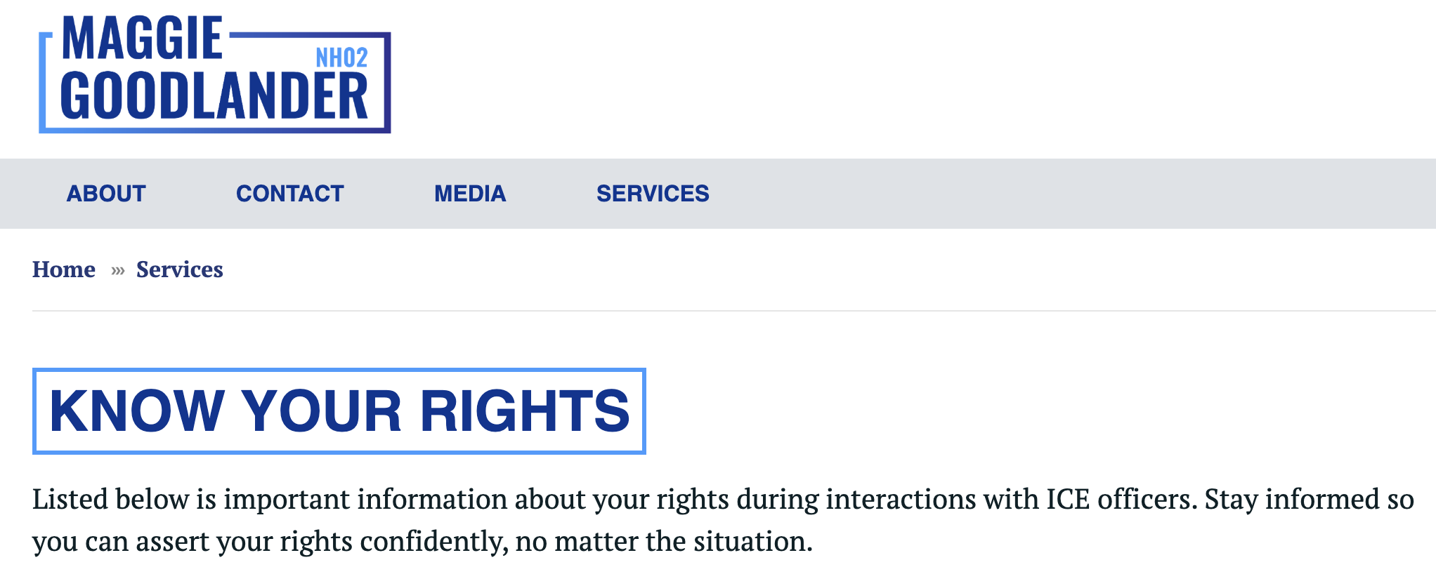 “Listed below is important information about your rights during interactions with ICE officers. Stay informed so you can assert your rights confidently, no matter the situation,” reads the Goodlander page, headlined “Know Your Rights.”