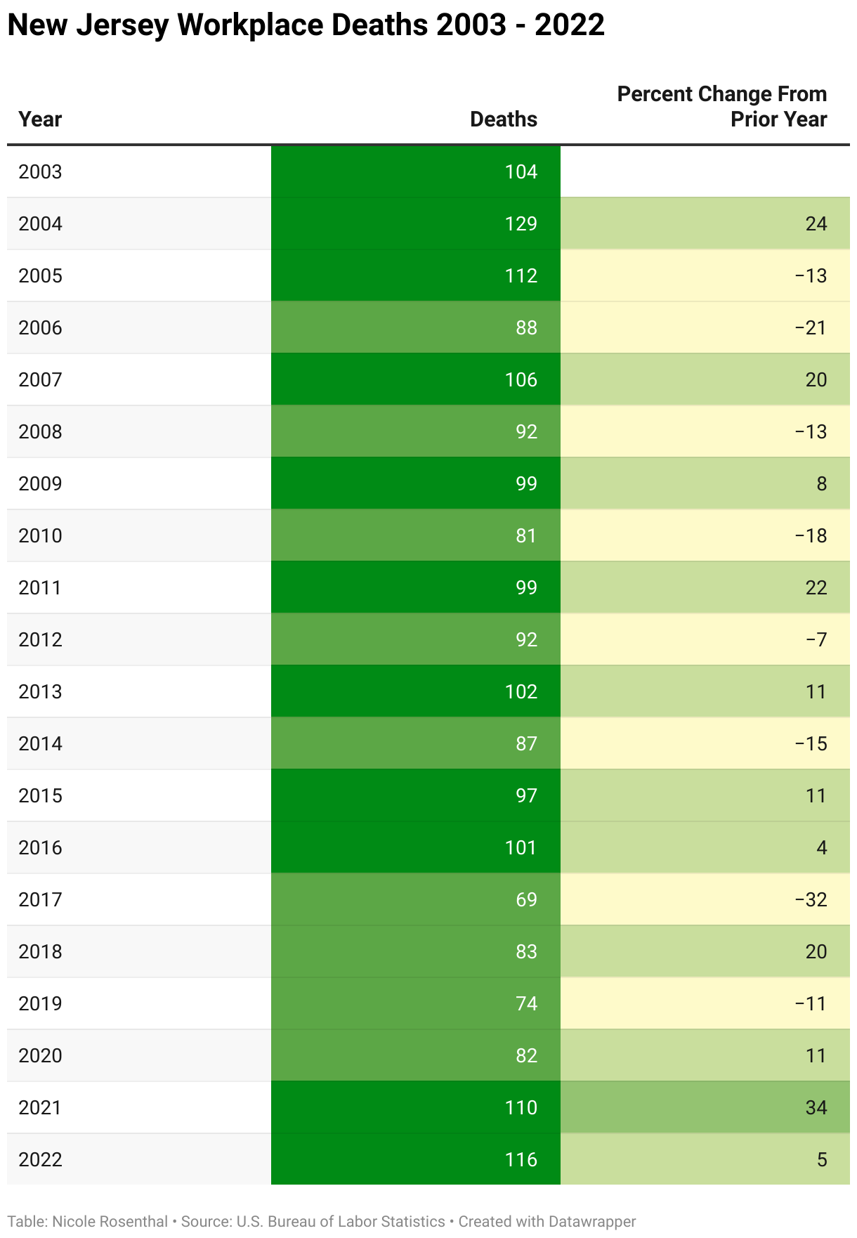 More New Jersey workers died as a result of injuries at work in 2022 than in any other year since 2004, according to new data.