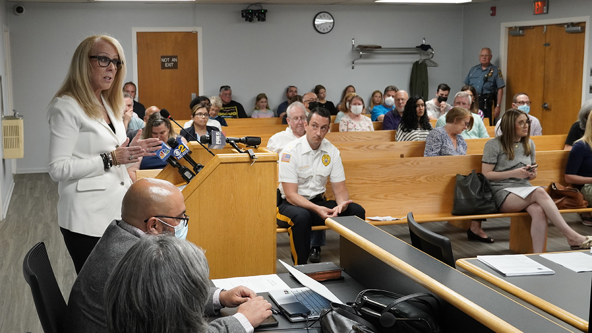 Resident Carolyn Brink speaks in favor of amendment allowing dogs in Fanwood parks