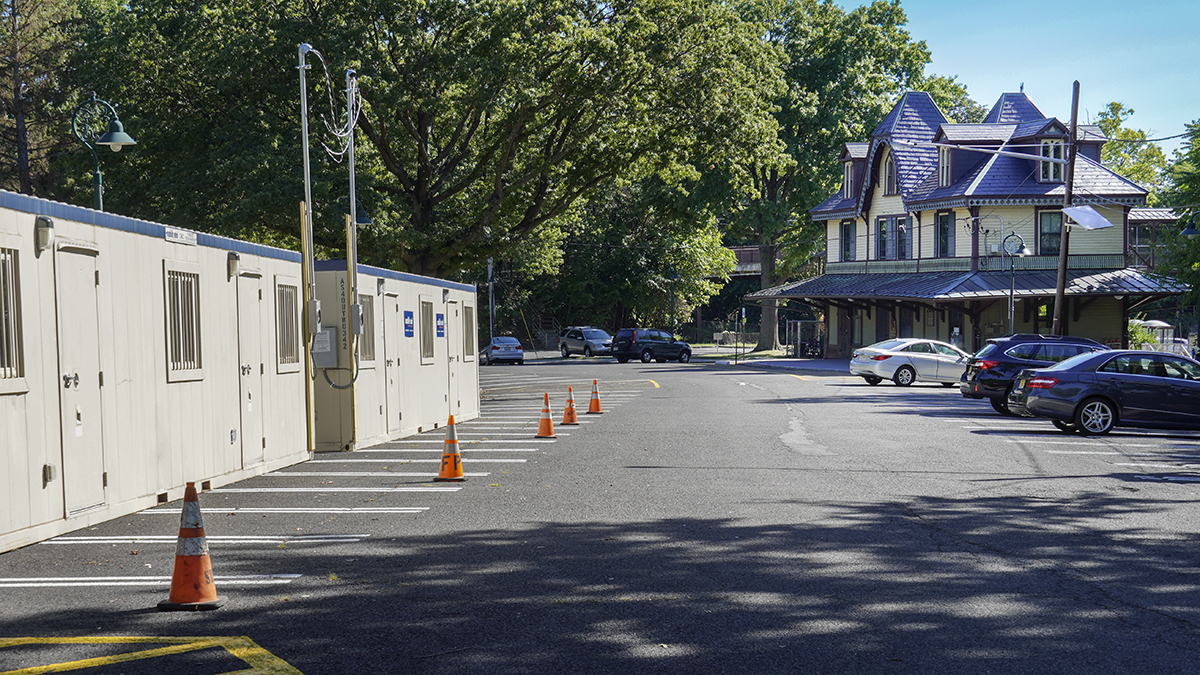 There are two office trailers currently parked outside the train station. One will contain books available through online reservations. The other will be for staff and supplies.