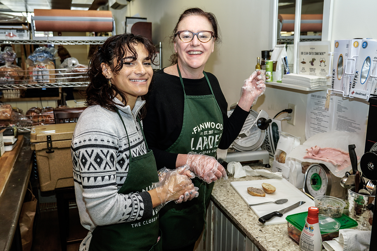 Zoe and Eva prepare sandwiches at the Fanwood Larder