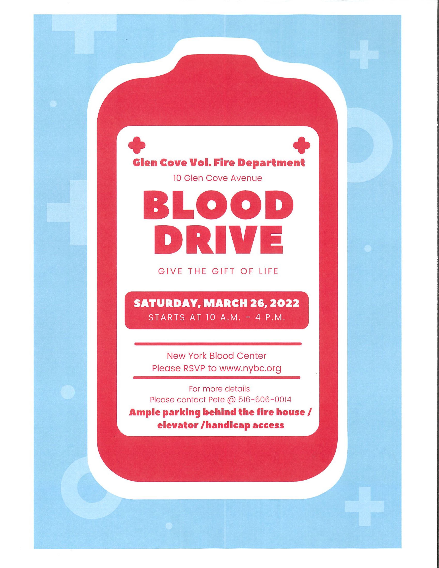 City Of Glen Cove: Blood Drive Sat., March 26th 10am-4pm @ Glen Cove Vol. Fire Dept.