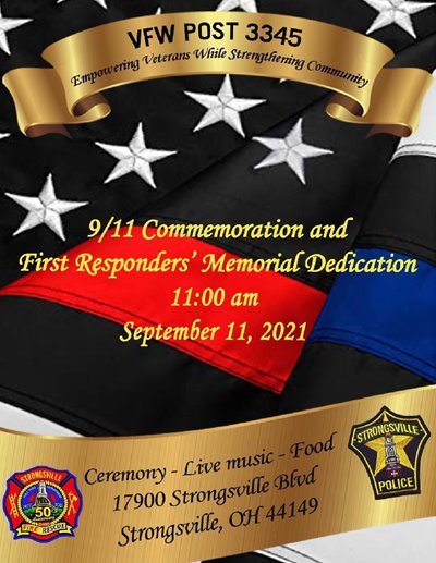 The community is invited to a 9/11 ceremony marking the 20th anniversary of the terrorist attacks at 11 a.m. Sept. 11 at the Strongsville VFW Post 3345, 17900 Strongsville Blvd.