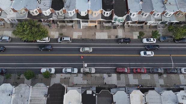 Aramingo Avenue, between Clearfield and Ann Streets, looks more like an obstacle course for drivers than a residential road/CBS Philadelphia