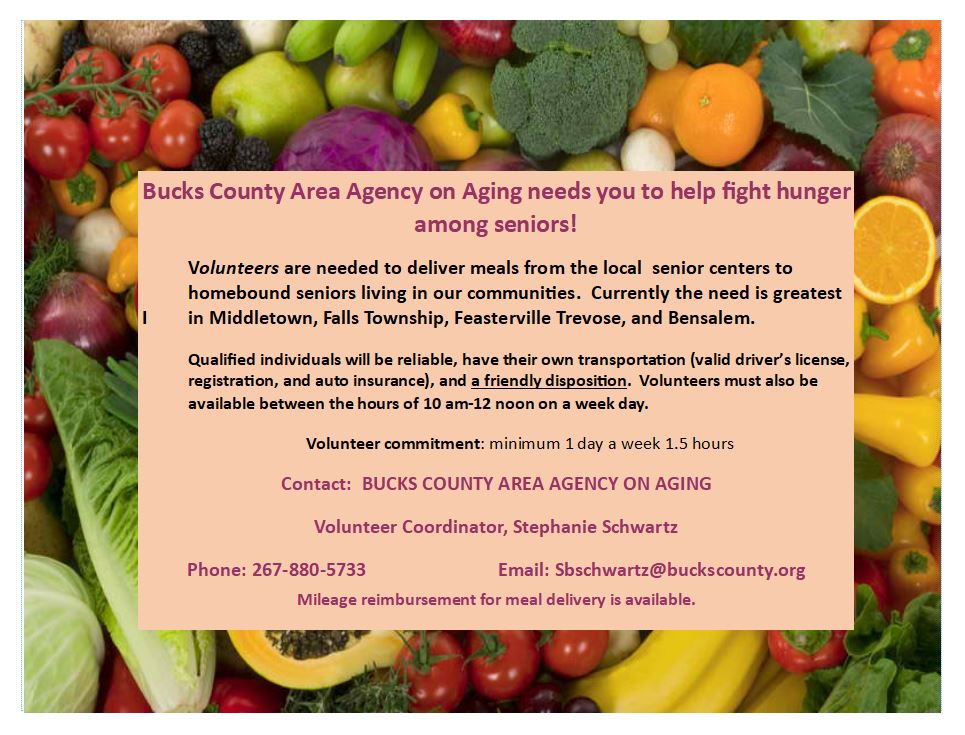 Bucks County Area Agency on Aging needs you to help fight hunger among seniors