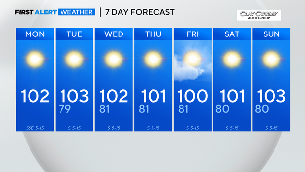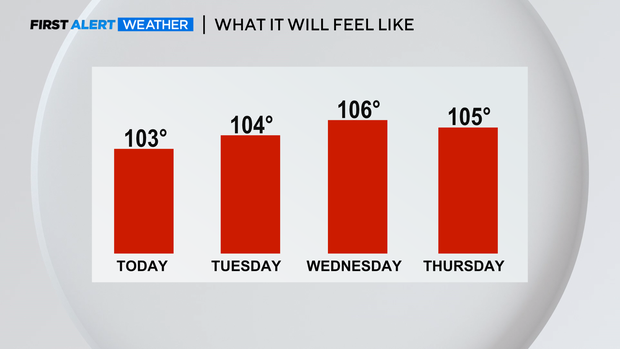 High temperatures will be around 102 this afternoon, but it will feel even warmer in parts of the area.