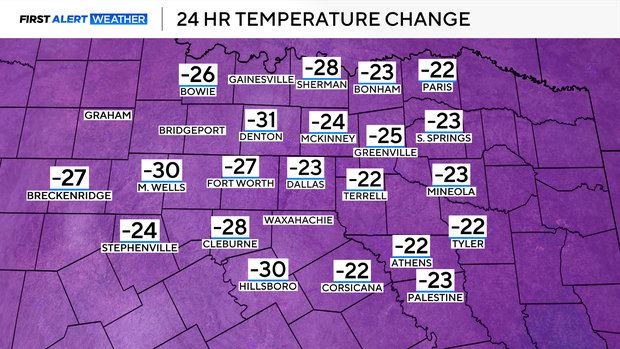 On this spring morning, temperatures are colder than Wednesday morning by as much as 25-30 degrees.
