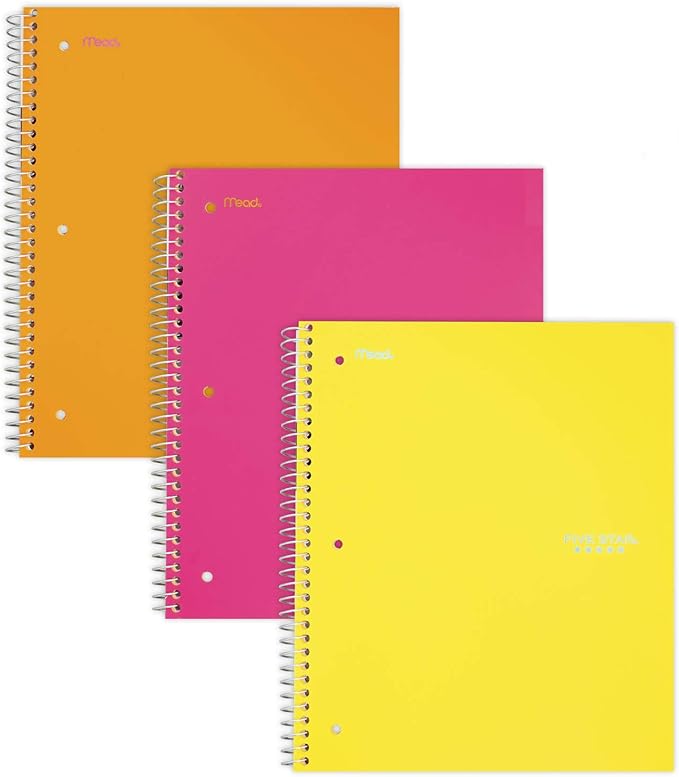 Five Star Spiral Notebooks, 1 Subject, 3 Pack, $20.97